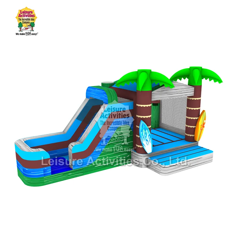 Leisure Activities® เป็นผู้ผลิตและผู้จำหน่ายอุปกรณ์เป่าลมระดับมืออาชีพ Super Inflatable Multiplay Bouncy Castles Tropical พร้อมธีมเกาะเขตร้อนผสมผสานการเด้ง การปีนเขา และสไลเดอร์ เหมาะสำหรับสถานการณ์เชิงพาณิชย์และงานต่างๆ ทั้งในร่มและกลางแจ้ง ผลิตจากวัสดุคุณภาพสูงมาตรฐานสากล ผสมผสานความสนุกสนาน ปลอดภัย และความสะดวกสบาย เป็นที่โปรดปรานของผู้ซื้อทั่วโลกในฐานะอุปกรณ์สันทนาการแบบเป่าลมคุณภาพสูง